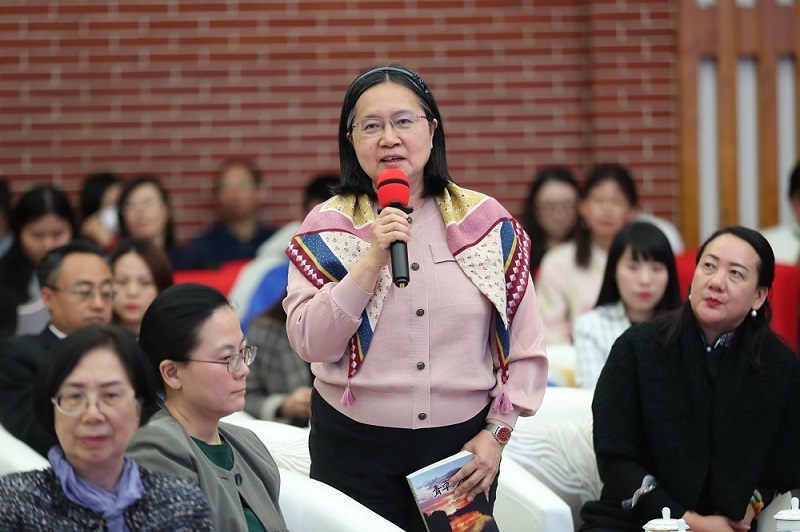6位作家代表發(fā)言結(jié)束后,現(xiàn)場進入了互動交流環(huán)節(jié)。港澳作家代表們踴躍發(fā)言,與臺上嘉賓積極互動、回憶過往、共話情誼,氣氛親切溫馨。香港作家代表團團長潘耀明著重談到了香港文學(xué)中的鄉(xiāng)土敘事和底層敘事。他說,香港的報紙副刊培養(yǎng)出一批工人作家,他們創(chuàng)作出許多以工人生活為主,以香港本土普通人生活為素材的文學(xué)作品,他們大多還沒有出現(xiàn)在內(nèi)地的評論家視野中,希望可以給予他們更多的關(guān)注。
