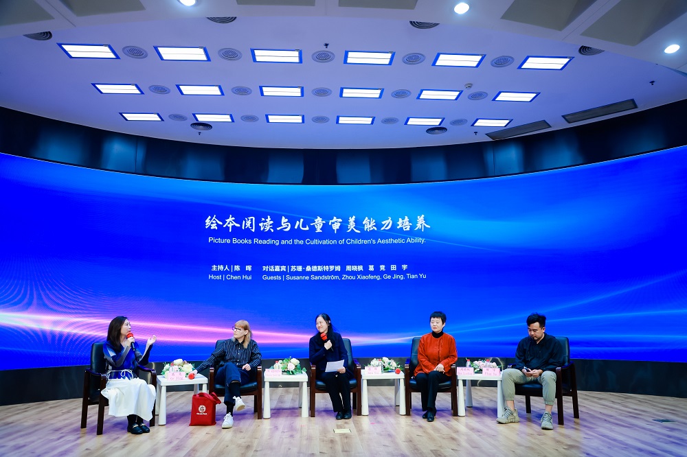 第二場對話圍繞“繪本閱讀與兒童審美能力培養(yǎng)”展開。主持人陳暉表示,童書體現(xiàn)的不僅是文字的美,更是思想的美和對世界的期待,“美是陪伴人一生的,重要的是讓孩子學(xué)會感受美、發(fā)現(xiàn)美”。田宇分析了文字在繪本創(chuàng)作中的重要作用。他認為,文與圖的巧妙配合是成就一部優(yōu)秀繪本的關(guān)鍵。蘇珊分享了瑞典繪本針對不同年齡段兒童采取不同風(fēng)格的經(jīng)驗,表示繪本和文字書各有所長,要相信兒童自身,不同年齡段的兒童會有不同的閱讀體驗。周曉楓分享了兒童文學(xué)和繪本跨界創(chuàng)作的經(jīng)驗,她表示,繪本不是簡化的文學(xué),凡是能提高孩子對世界的感知、發(fā)現(xiàn)自身不足、勇敢面對困難的能力的書都有價值,不存在高下之分,并且很多少兒繪本對成年人同樣具備感染力。葛競談到,孩子閱讀繪本過程中會表現(xiàn)出種種反應(yīng),需要被肯定、被贊美,從而激發(fā)其探索事物內(nèi)在關(guān)聯(lián)的能力,獲得審美的經(jīng)驗,這是繪本能夠帶給孩子審美體驗的重要動因。
