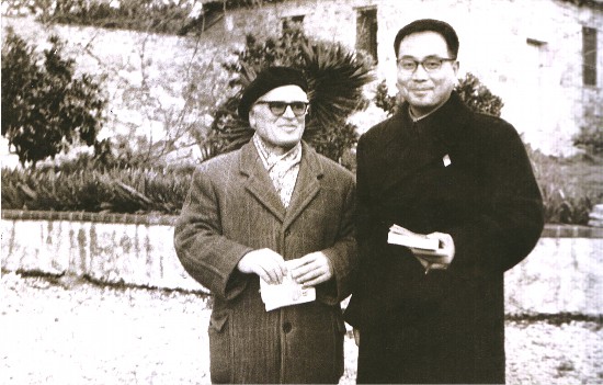 鄭恩波作為《人民日?qǐng)?bào)》記者代表團(tuán)團(tuán)員兼翻譯訪(fǎng)問(wèn)阿爾巴尼亞費(fèi)里區(qū),與雅科夫·佐澤(左)合影留念 1974年12月3日攝