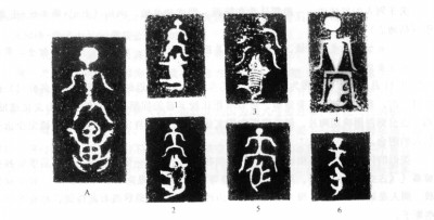 圖一:天黽與天獸族徽(A天黽,1-6天獸) 作者提供