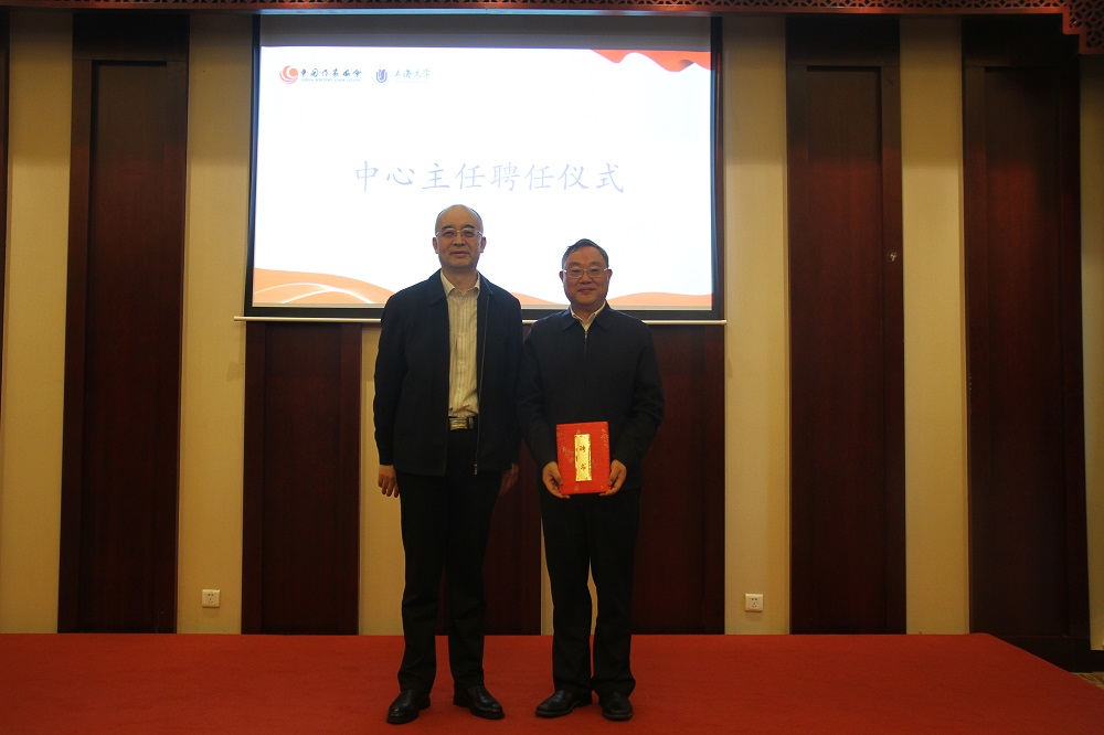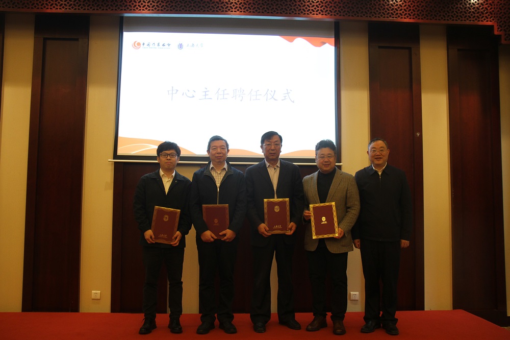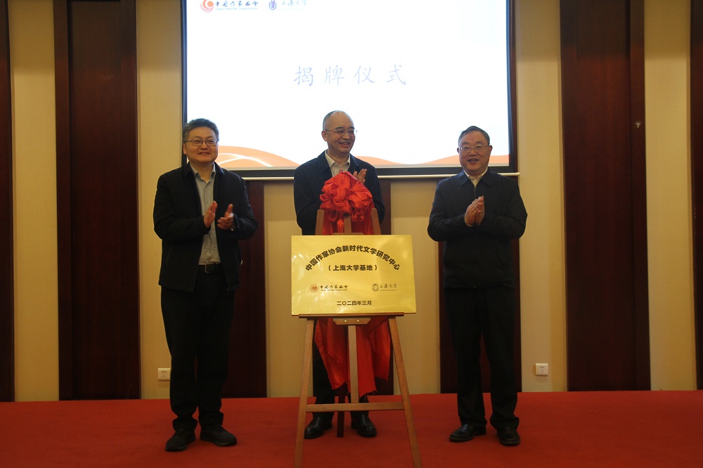 吳義勤、馬文運(yùn)、成旦紅為中國作協(xié)新時(shí)代文學(xué)研究中心(上海大學(xué)基地)揭牌