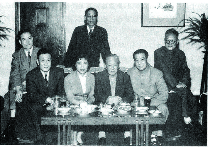 1962年,(坐者從左往右)羅蓀、劉白羽、秦怡、中島健藏(日本友人)、陽翰笙、巴金合影