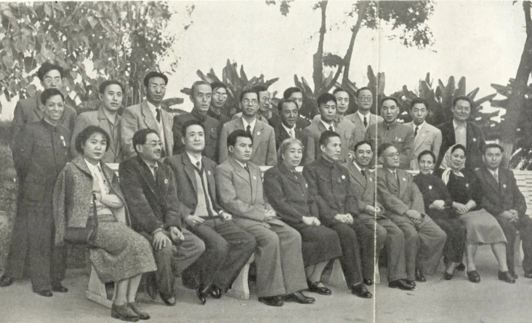 圖1 1958年10月,出席亞非作家會(huì)議中國(guó)代表團(tuán)合影。團(tuán)長(zhǎng)茅盾(右五),副團(tuán)長(zhǎng)周揚(yáng)(右六)、巴金(右四)。團(tuán)員有戈寶權(quán)、葉君健、劉白羽、曲波、祖農(nóng)·哈迪達(dá)爾、季羨林、趙樹理、袁水拍、郭小川、納·賽音朝克圖、庫(kù)爾班·阿里、許廣平、張庚、楊朔、楊沫、瑪拉沁夫、謝冰心、蕭三。