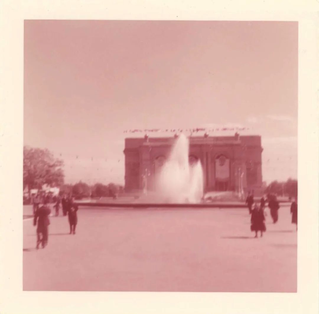 我們一走下飛機(jī),就給熱情的蘇聯(lián)朋友們包圍起來(lái)……在熱鬧聲中,我偷眼看了看機(jī)場(chǎng):是一個(gè)極大極現(xiàn)代化的飛機(jī)場(chǎng)。大型的“圖-104”飛機(jī)在這里從從容容地起飛、降落。候機(jī)室也是極現(xiàn)代的高樓……汽車開進(jìn)城去,是寬闊潔凈的柏油馬路,兩旁種著高大的樹。樹蔭下是整齊干凈的人行道。馬路兩旁的房子差不多都是高樓大廈,同莫斯科一般的房子也相差無(wú)幾。中間或間雜著一兩幢具有民族風(fēng)味的建筑。只有在看到這樣的房子的時(shí)候,我心頭才漾起那么一點(diǎn)“東方風(fēng)味”,我才意識(shí)到現(xiàn)在是在蘇聯(lián)東方的一個(gè)加盟共和國(guó)里。[29]