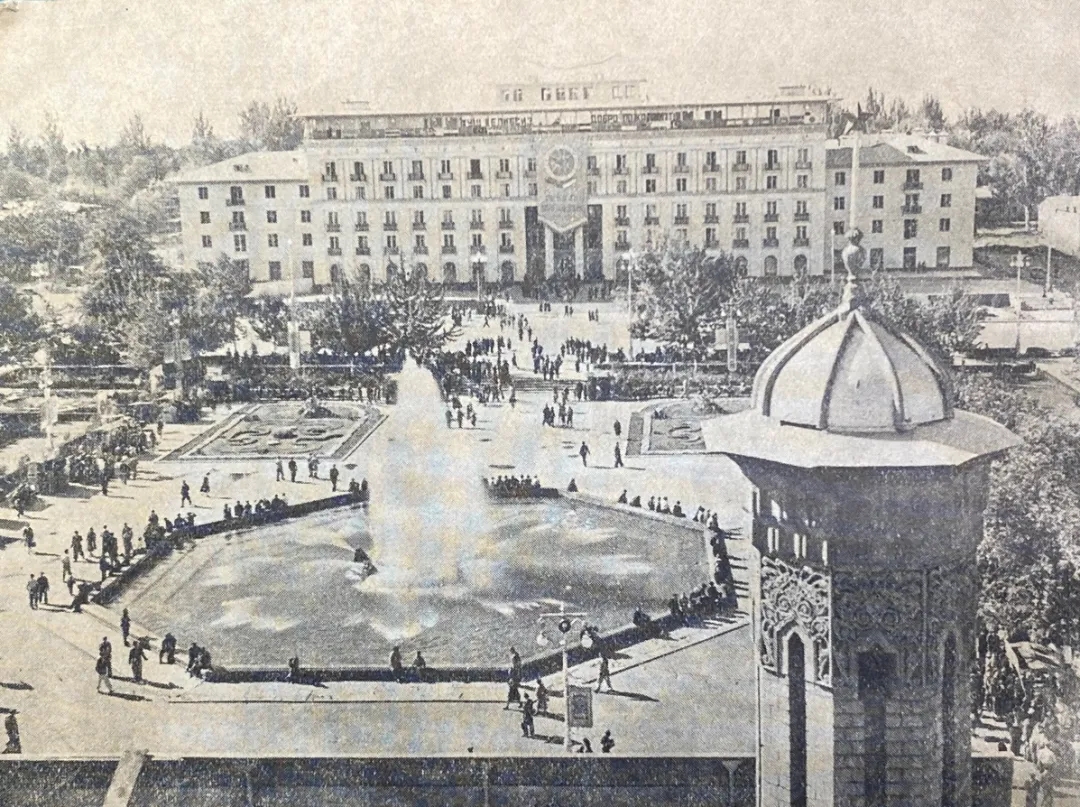 事實(shí)上,作家們所見到的城市布局,是戰(zhàn)后恢復(fù)建設(shè)過(guò)程中莫斯科和當(dāng)?shù)氐慕ㄔO(shè)者們不斷探索的產(chǎn)物:既要讓城市服務(wù)于生活和生產(chǎn),也要抵御沙漠、干旱和不期而遇的地震;要涵納烏茲別克獨(dú)特的民族形式,更要體現(xiàn)蘇聯(lián)最新的建設(shè)經(jīng)驗(yàn)。中國(guó)作家們不約而同地注意到在自己所下榻的酒店正對(duì)著會(huì)議主會(huì)場(chǎng)納沃伊劇院(Navoi Theater)。這座建筑于1948年4月落成,在亞非作家會(huì)議前特意進(jìn)行了翻修,被視作蘇聯(lián)的建設(shè)經(jīng)驗(yàn)在烏茲別克最經(jīng)典的本土化實(shí)踐之一。它使用了當(dāng)時(shí)最高標(biāo)準(zhǔn)的建設(shè)用料,實(shí)現(xiàn)了對(duì)社會(huì)主義建筑和本地民族風(fēng)格的完美融合,在劇院內(nèi)部,六個(gè)有著風(fēng)格各異的雕刻和裝飾的房間,分別代表著塔什干、撒馬爾罕、布哈拉、希瓦、費(fèi)爾干納和鐵梅茲六個(gè)主要地區(qū)。更有意味的是劇院的選址,在曾經(jīng)沙俄時(shí)代的沃斯克雷森斯基集市(Voskresenskii Market)之上,是劇院把這個(gè)“中世紀(jì)的糞坑”改造成一個(gè)流淌著噴泉的城市廣場(chǎng),同百貨公司和高檔酒店一起成為城市文化生活的中心街區(qū)[30]。