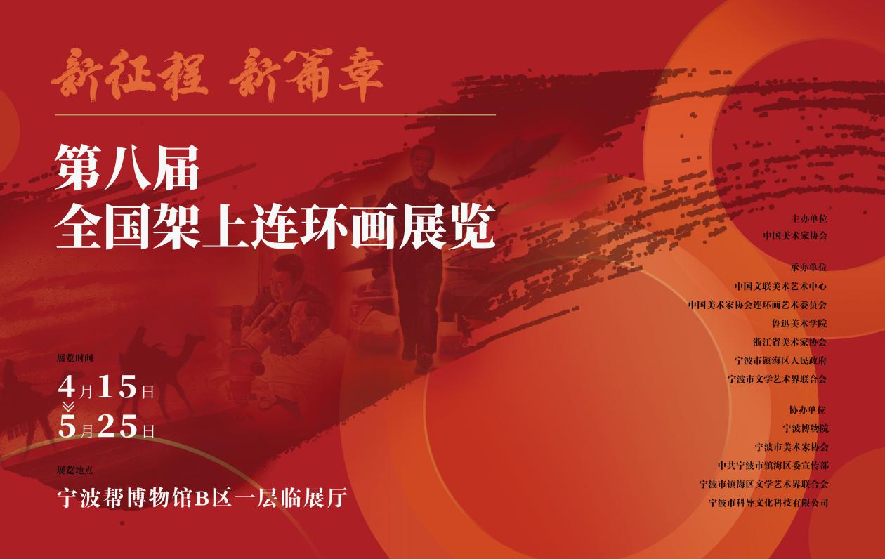 4月15日,由中國(guó)美術(shù)家協(xié)會(huì)主辦,中國(guó)文聯(lián)美術(shù)藝術(shù)中心、中國(guó)美協(xié)連環(huán)畫藝委會(huì)、魯迅美術(shù)學(xué)院、浙江省美協(xié)、寧波市文聯(lián)、寧波市鎮(zhèn)海區(qū)人民政府承辦,寧波博物院、寧波市美協(xié)、中共寧波市鎮(zhèn)海區(qū)委宣傳部、寧波市鎮(zhèn)海區(qū)文聯(lián)、寧波市科導(dǎo)文化科技有限公司協(xié)辦的“新征程 新篇章——第八屆全國(guó)架上連環(huán)畫展覽”在浙江寧波幫博物館隆重開幕。