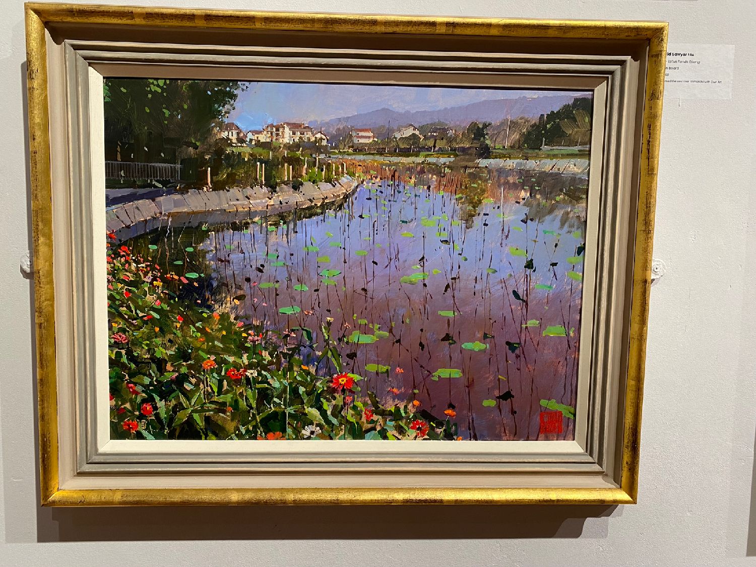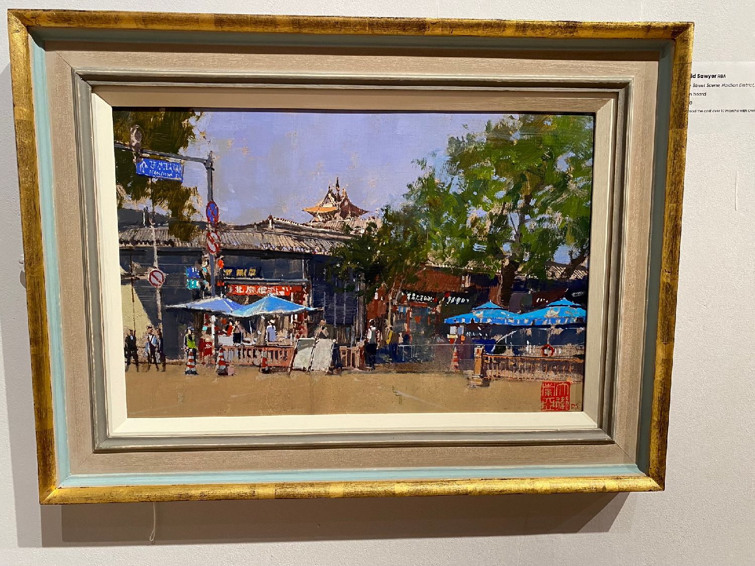 此外,展覽上有繪制故宮、頤和園、重慶郊外荷花池等五幅中國元素的作品引人注意,這是由英國著名現(xiàn)代印象派畫家大衛(wèi)·索亞(David Sawyer)所作,他是英國皇家藝術(shù)家學(xué)會會員、切爾西藝術(shù)協(xié)會會員,作品多次獲獎,并被英國皇室和多家機構(gòu)收藏,曾作為官方巡回藝術(shù)家隨查爾斯王儲(現(xiàn)查理三世國王)夫婦出訪加勒比地區(qū)。