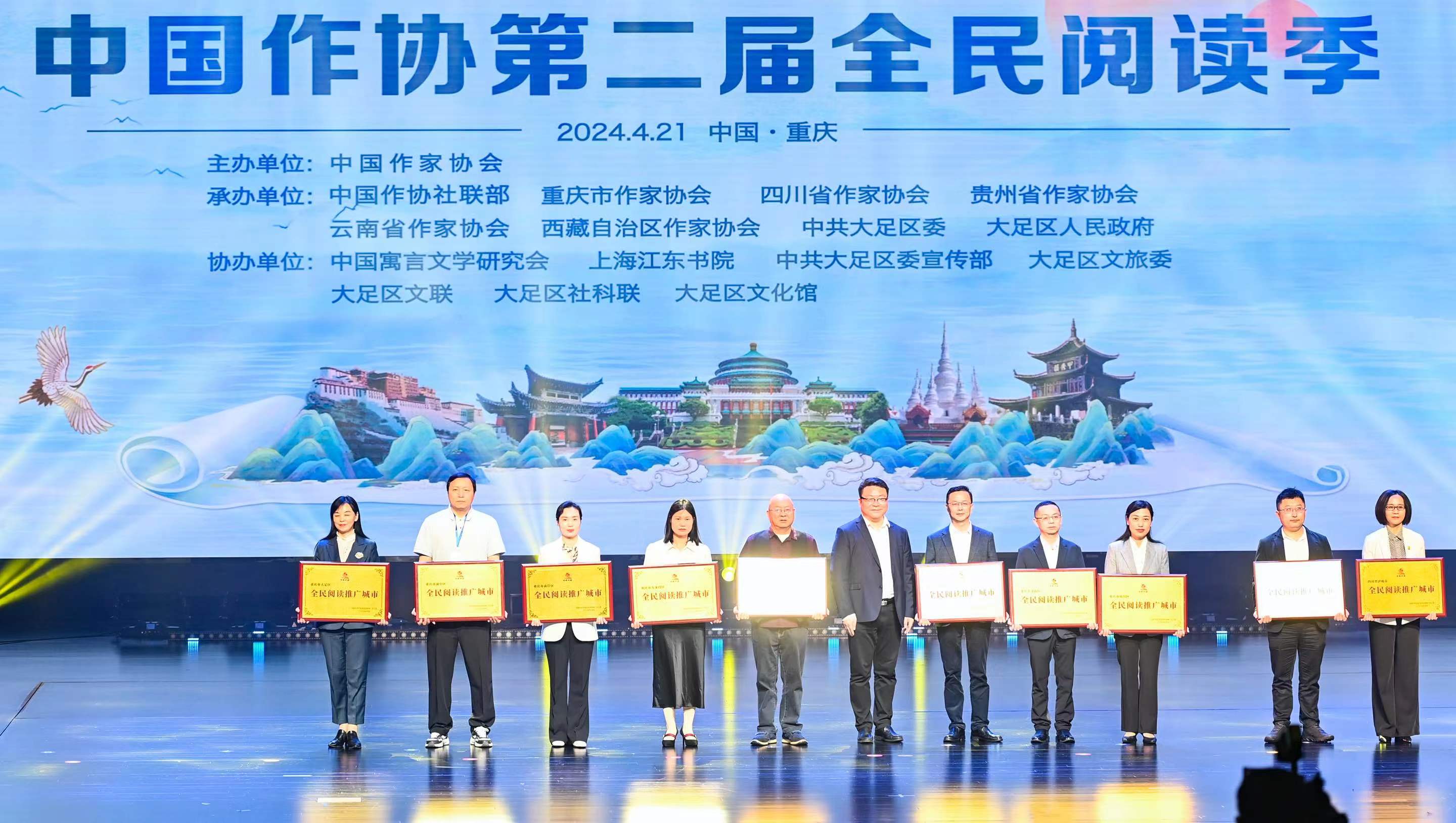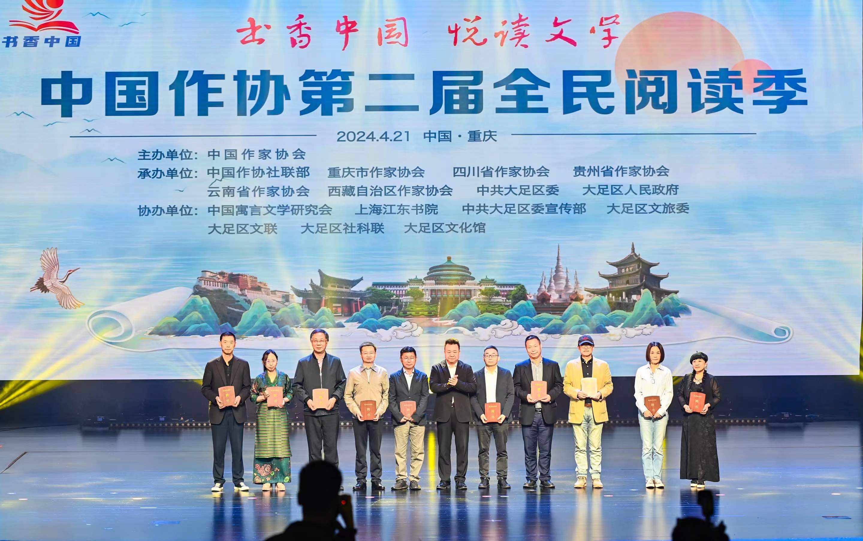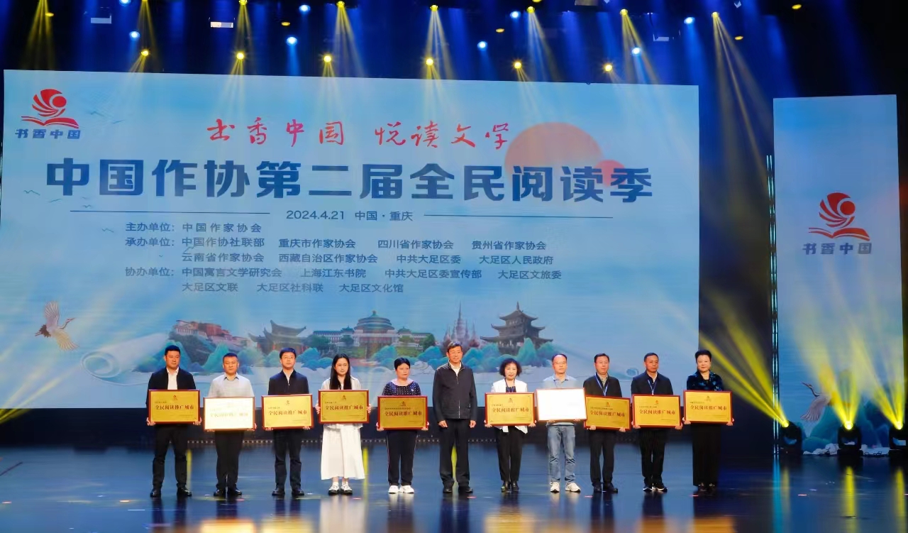 第二屆全民閱讀季由中國(guó)作家協(xié)會(huì)主辦,中國(guó)作協(xié)社會(huì)聯(lián)絡(luò)部、重慶市作家協(xié)會(huì)、四川省作家協(xié)會(huì)、貴州省作家協(xié)會(huì)、云南省作家協(xié)會(huì)、西藏自治區(qū)作家協(xié)會(huì)、中國(guó)語(yǔ)言文學(xué)研究會(huì)、中共重慶市大足區(qū)委、重慶大足區(qū)人民政府承辦。在接下來(lái)的幾個(gè)月中,西南五省區(qū)市也將持續(xù)開(kāi)展系列活動(dòng),貫穿全年,遍布城鄉(xiāng),讓文學(xué)閱讀成為日常生活、公共生活不可或缺的部分。