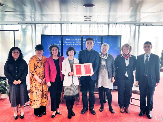 在法國(guó)巴黎中國(guó)文化中心舉辦的“新時(shí)代文學(xué)攀登計(jì)劃”贈(zèng)書儀式上,中國(guó)圖書進(jìn)出口(集團(tuán))有限公司總經(jīng)理林麗穎向巴黎中國(guó)文化中心主任劉紅革贈(zèng)送了“新時(shí)代文學(xué)攀登計(jì)劃”前三期已出版的作品,共24種、50冊(cè)。這些文學(xué)作品從不同側(cè)面為法國(guó)品讀新時(shí)代“書香中國(guó)”、感知中國(guó)式現(xiàn)代化搭建了新的平臺(tái),對(duì)于促進(jìn)兩國(guó)人民間的相互理解和友誼具有重要的文化意義。