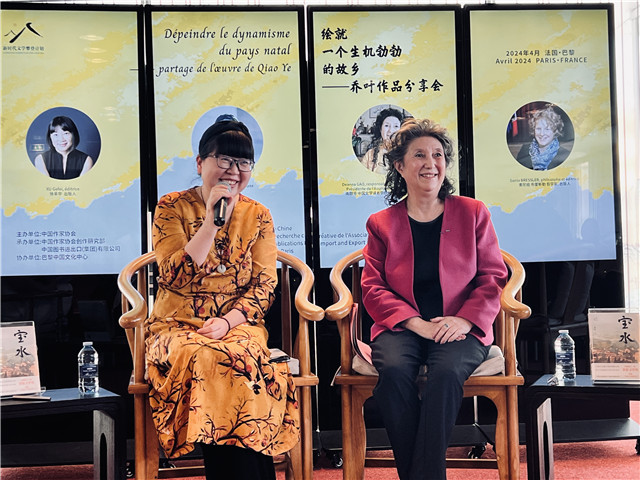 贈(zèng)書儀式后舉行了“繪就一個(gè)生機(jī)勃勃的故鄉(xiāng)”——喬葉作品分享會(huì)。作家喬葉與法中文化協(xié)會(huì)創(chuàng)辦主席高醇芳、法國(guó)絲路出版社社長(zhǎng)索尼婭·布雷斯勒圍繞《寶水》的創(chuàng)作展開深入交流?!秾毸份^為全面地展現(xiàn)了新時(shí)代中國(guó)農(nóng)村的變革和生活的多維度內(nèi)涵,呈現(xiàn)出中國(guó)式現(xiàn)代化實(shí)踐的生動(dòng)景象。索尼婭·布雷斯勒分享了她對(duì)中國(guó)農(nóng)村的印象,認(rèn)為中國(guó)的農(nóng)村是“國(guó)家心臟的跳動(dòng)之地”,并對(duì)《寶水》中描繪的人與人之間的聯(lián)系,以及作者用細(xì)膩筆觸和詩意語言所表達(dá)的情感給予高度評(píng)價(jià)。她認(rèn)為,書中豐富的細(xì)節(jié)描寫,使讀者得以全面、深入、客觀地了解中國(guó)社會(huì)的精神面貌,并深入中國(guó)人的內(nèi)心世界。作為一位對(duì)中國(guó)古典文學(xué)和現(xiàn)當(dāng)代文學(xué)都有深刻理解的翻譯家,高醇芳特別提到了喬葉在《寶水》中巧妙融合古詩元素的手法,認(rèn)為這種融合不僅讓讀者在閱讀的過程中產(chǎn)生共鳴,更展現(xiàn)了古代詩歌在中國(guó)當(dāng)代文學(xué)中的獨(dú)特魅力,具有跨越時(shí)代的世界性意義?!斑@是一面鏡子,通過一個(gè)現(xiàn)代女性在故鄉(xiāng)重新尋根、尋健康、尋活力、尋幸福的經(jīng)歷,折射出山鄉(xiāng)的動(dòng)態(tài)變遷和中國(guó)農(nóng)村生活的內(nèi)在肌理。”談及創(chuàng)作感悟,喬葉表示,她曾走訪江西、甘肅、貴州等中國(guó)10多個(gè)省,深入了解中國(guó)鄉(xiāng)村的多樣性,最后以故鄉(xiāng)河南作為主要原型,結(jié)合走訪中的見聞,塑造了“寶水”這個(gè)生機(jī)勃勃的村莊,以此展現(xiàn)中國(guó)鄉(xiāng)村當(dāng)下的普遍狀態(tài),并探討個(gè)人成長(zhǎng)、人與故鄉(xiāng)的關(guān)系,也期待這部小說能在法國(guó)讀者心中產(chǎn)生共鳴。