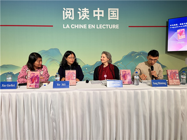 “時(shí)光漫漫,因愛不老”——葉彌作品分享會(huì)也在巴黎圖書節(jié)期間舉辦。作家葉彌與法國(guó)翻譯家李蓓珂從葉彌的小說《不老》出發(fā),討論了女性主義文學(xué)中的女性覺醒和女性力量?!恫焕稀芬?0世紀(jì)70年代末的江南小城吳郭市為背景,以女青年孔燕妮的婚戀生活為切入點(diǎn),展現(xiàn)了普通人在大時(shí)代中的生活與命運(yùn)。當(dāng)被問及“愛以及與不老的關(guān)系”時(shí),葉彌表示,“不老”并非指肉體上的不朽,而是指靈魂的永恒。當(dāng)一個(gè)人擁有對(duì)他人和對(duì)自己的愛時(shí),才能保持靈魂的年輕和精神上的活力。李蓓珂認(rèn)為,《不老》具有極強(qiáng)的畫面感,如同電影劇本一般,情節(jié)連貫,引人入勝。葉彌在小說中超越了“愛”的主題,為讀者揭示了一個(gè)在愛的驅(qū)使下將“愛”作為座右銘的人物青春心靈的終極秘密。