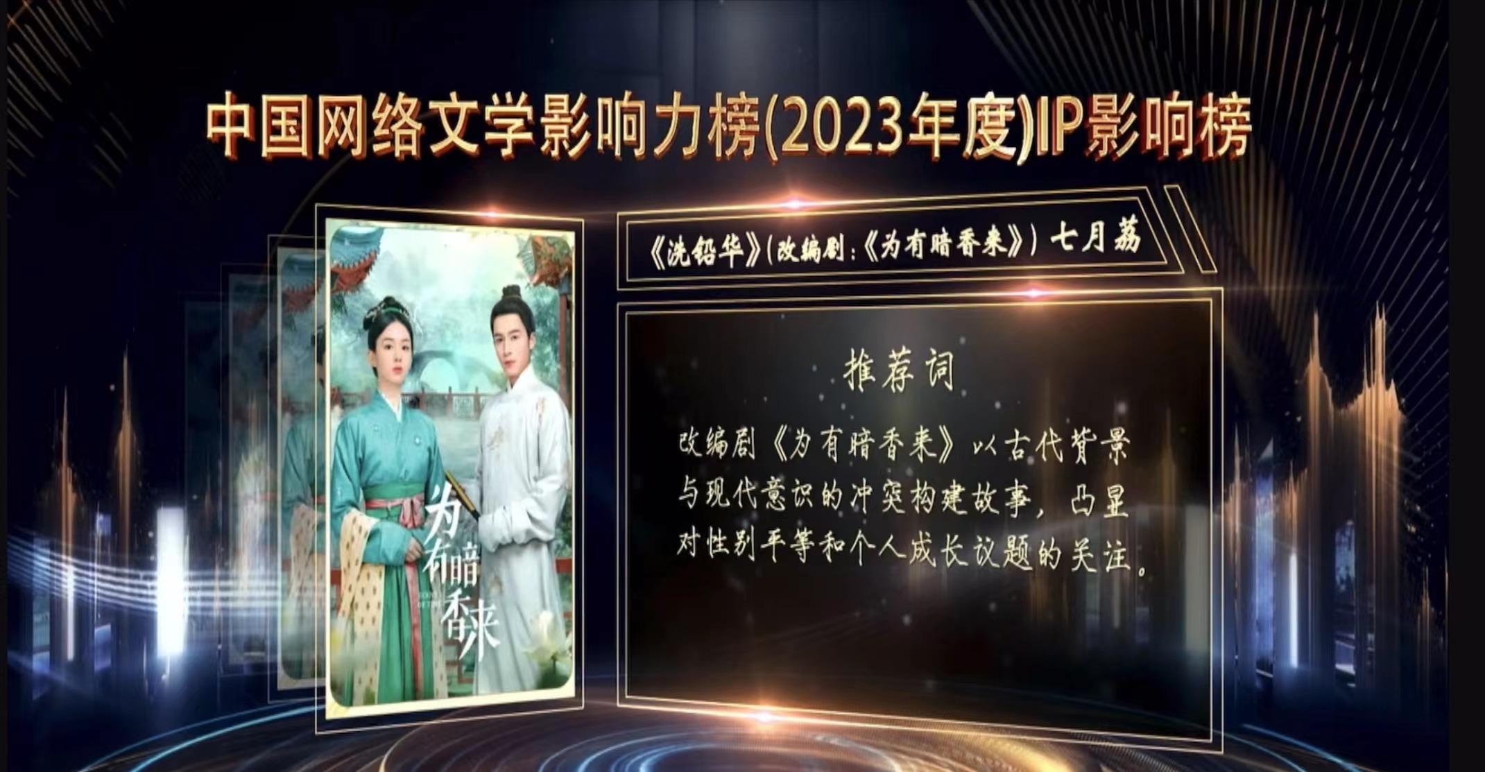 2023年度“中國網(wǎng)絡(luò)文學(xué)影響力榜”發(fā)布 知乎《洗鉛華》入選IP影響榜