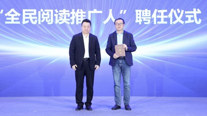 邱華棟為劉慈欣頒發(fā)“中國(guó)作協(xié)第二屆全民閱讀季”閱讀推廣人聘書(shū)