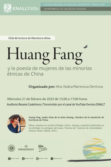 近期,由中國(guó)作家協(xié)會(huì)外聯(lián)部指導(dǎo),墨西哥“中國(guó)文學(xué)讀者俱樂(lè)部”、中國(guó)圖書(shū)進(jìn)出口(集團(tuán))有限公司與墨西哥國(guó)立自治大學(xué)共同舉辦的“共賞黃昏——《落霞重重》少數(shù)民族作家詩(shī)歌分享會(huì)” 在該校成功舉辦。壯族女作家、詩(shī)人黃芳,墨西哥國(guó)立自治大學(xué)語(yǔ)言、語(yǔ)言學(xué)和翻譯系主任瑪麗亞·德?tīng)枴たㄩT·孔蒂約赫·埃斯孔特里亞博士,中文系教授拉嫡娜,譯者蘇珊娜·鮑蒂斯塔以及墨西哥國(guó)立自治大學(xué)中文系師生出席了此次活動(dòng)。埃斯孔特里亞博士為本次活動(dòng)致辭,并對(duì)黃芳首次訪問(wèn)學(xué)校表示熱烈歡迎。