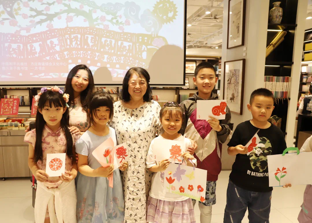 在作者和主持人瑩瑩老師的幫助下,孩子們發(fā)揮奇思妙想,用靈巧的小手將自己喜歡的事物,剪成一個個充滿童趣、獨一無二的作品,展現(xiàn)了一個個精彩紛呈的童話世界。劉雪純現(xiàn)場剪了花朵、小貓等剪紙,送給孩子們作為母親節(jié)的禮物。