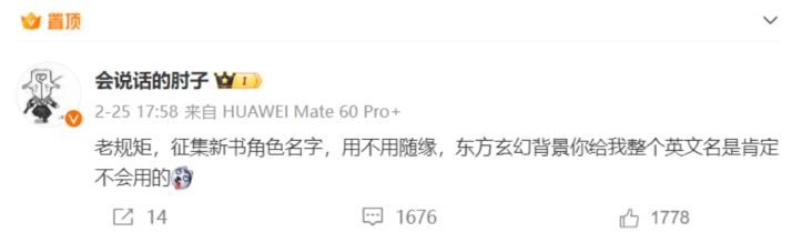 讓自己的讀者穿進網(wǎng)文世界“跑龍?zhí)住?,從某種程度上也反映出了網(wǎng)絡(luò)文學的一大特點——作家和讀者的互動關(guān)系是緊密、生動的,甚至能衍生出更多有趣的網(wǎng)絡(luò)文學“周邊”文化,慢慢的這種傳統(tǒng)也流傳下來。除了直接把讀者寫進作品,有的作家也會公開征集“龍?zhí)住苯巧?。比如會說話的肘子在微博發(fā)帖征集東方玄幻背景的新書角色名字,下面的評論有熟人的玩笑報名,也有素人讀者提供想法,比如有人推薦“徐行”,并解釋來源于“莫聽穿林打葉聲,何妨吟嘯且徐行”(蘇軾《定風波》)。起點讀書社區(qū)更是有許多“龍?zhí)讟恰?,《赤心巡天》作者情何以甚就在書友圈發(fā)布過帖子建“龍?zhí)讟恰保堊x者以“個人ID昵稱+龍?zhí)酌?角色簡單介紹”的形式集思廣益設(shè)定角色,評論區(qū)就會有上百條天馬行空的熱情回應(yīng),形成一種活躍的閱讀社區(qū)氛圍。
