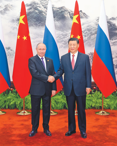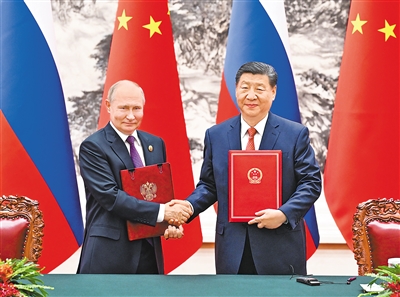 習(xí)近平強(qiáng)調(diào),中俄關(guān)系75年發(fā)展歷史得出的最重要結(jié)論,就是兩個(gè)相鄰的大國(guó)之間,必須始終弘揚(yáng)和平共處五項(xiàng)原則,相互尊重、平等互信、照顧彼此關(guān)切,真正為雙方的發(fā)展振興相互提供助力。這既是中俄兩國(guó)正確相處之道,也是21世紀(jì)大國(guó)關(guān)系應(yīng)該努力的方向。中俄關(guān)系有著深厚的歷史積淀和堅(jiān)實(shí)的民意基礎(chǔ),雙方要密切戰(zhàn)略協(xié)作和互利合作,堅(jiān)定地走自己的發(fā)展道路,堅(jiān)定維護(hù)國(guó)際公平正義。