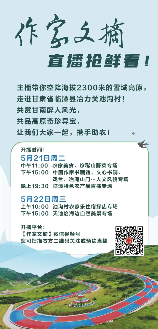 為響應(yīng)中國作家協(xié)會定點幫扶工作號召,中國作家出版集團所屬文學(xué)出版單位與社會愛心力量組成慰問幫扶小分隊,將于5月21日-5月22日在甘肅臨潭開展“文學(xué)助力鄉(xiāng)村振興·臨潭行”活動。