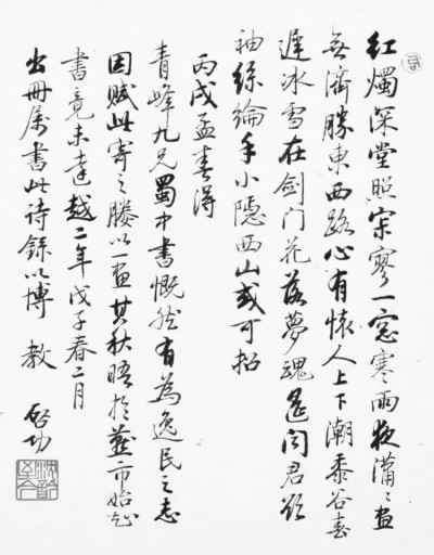 啟功先生在《啟功口述歷史》中,曾深情回憶到祖父教他念詩時候的場景,而且少年時便開始學(xué)寫詩,曾有《社課詠春柳四首擬漁洋秋柳之作》等少作,且轉(zhuǎn)益多師,終生不廢吟誦。其生平舊體詩作,結(jié)集有《啟功韻語》《啟功絮語》《啟功叢稿·詩詞卷》等。并有《詩文聲律論稿》這樣的精深專著。啟先生1946年贈給柴先生的這首詩作,不論是遣詞造句,以及用典等,無不顯示出其深厚的舊體詩功底,而且寄托了對友人深摯的思念。作為啟先生老友的柴德賡先生,亦雅好舊體詩,其詩稿至今尚存,并將收入商務(wù)印書館即將刊行的《柴德賡全集》中。柴、啟兩先生,除了平日砥礪學(xué)術(shù),還互相詩酒唱和,這從啟先生《次韻青峰吳門見懷之作》、柴先生《寄懷元白兄》等作即可看出。而他們之間的深厚友誼,則貫穿了整整一生。