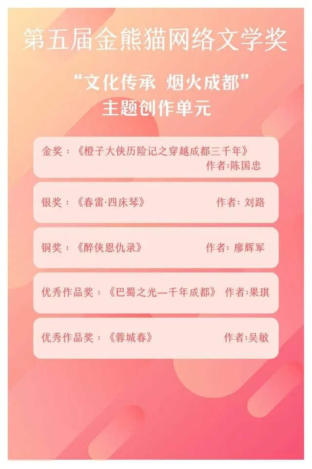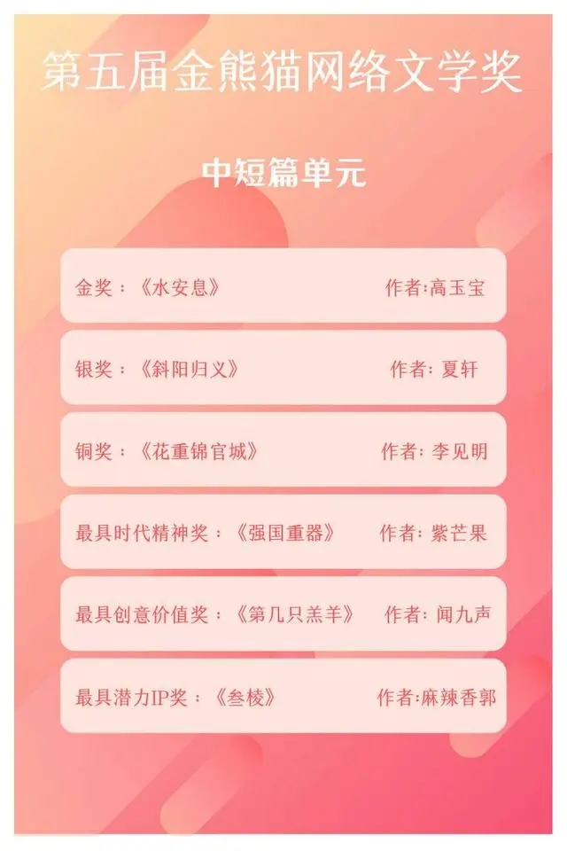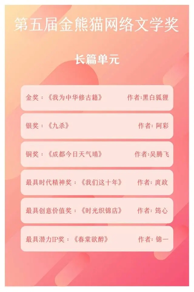 附:第五屆金熊貓網(wǎng)絡(luò)文學(xué)獎獲獎名單