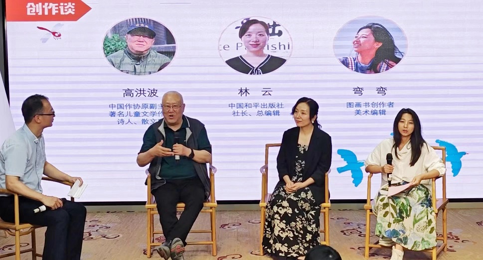 “我們相信,好的童謠、兒歌就如春天的種子,落入孩子的心田,會生根、發(fā)芽,會成為孩子一生最美好的記憶?!痹凇靶柼柾{繪本”創(chuàng)作談時,中國和平出版社社長林云講述了和平社的出版理念和選題策劃方向,她講道:“作家高洪波先生聯合繪畫風格溫暖、靈動、多元的彎彎、馬鵬浩等青年畫家、小畫家們,以及我們的編輯團隊,不斷討論、修改、完善,歷經三四年的時間,‘小問號童謠繪本’才得以在今天與大家見面。希望孩子們能在閱讀這套繪本中感受到童謠兒歌的音韻之美,體會到大千世界的豐富多彩?!?/p>