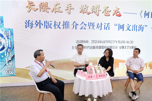 6月19日,第30屆北京國際圖書博覽會(BIBF)開幕當(dāng)日,安徽文藝出版社的《何日請長纓》海外版權(quán)推介會暨對話“網(wǎng)文出?!比蛴绊懥顒釉诎不震^舉辦。