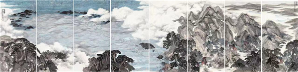 《聽濤山岳圖》 溫驤 作 紙本設(shè)色 248×1032cm 2015年