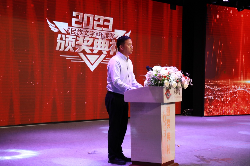 吳學(xué)榕代表中共麗江市委對頒獎典禮的舉辦表示祝賀,對參加典禮的各位嘉賓、作家表示歡迎。他表示,民族文化孕育出民族文學(xué),民族文學(xué)又集中展現(xiàn)著民族文化,如同一面鏡子,清晰地映照出一個民族的靈魂深處。多民族和諧共融、生生不息造就出的獨特民族文化是麗江的“靈魂”,一批又一批的麗江民族文學(xué)工作者,始終堅持為人民書寫、為時代放歌,創(chuàng)作了許多精品佳作,擦亮了“文化麗江”品牌?!睹褡逦膶W(xué)》年度獎頒獎典禮在麗江的持續(xù)舉辦,必將有力促進(jìn)麗江民族文學(xué)人才培養(yǎng)和優(yōu)秀作品創(chuàng)作,為麗江文化發(fā)展注入持久的原動力。