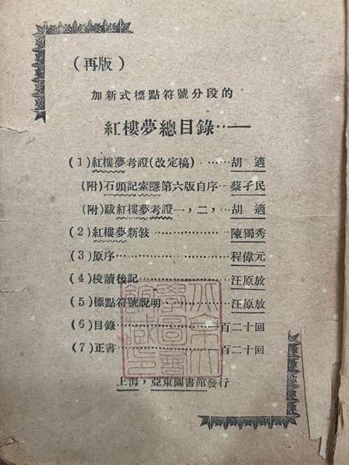 上海亞東圖書館新式標點版《紅樓夢》(1922年再版)
