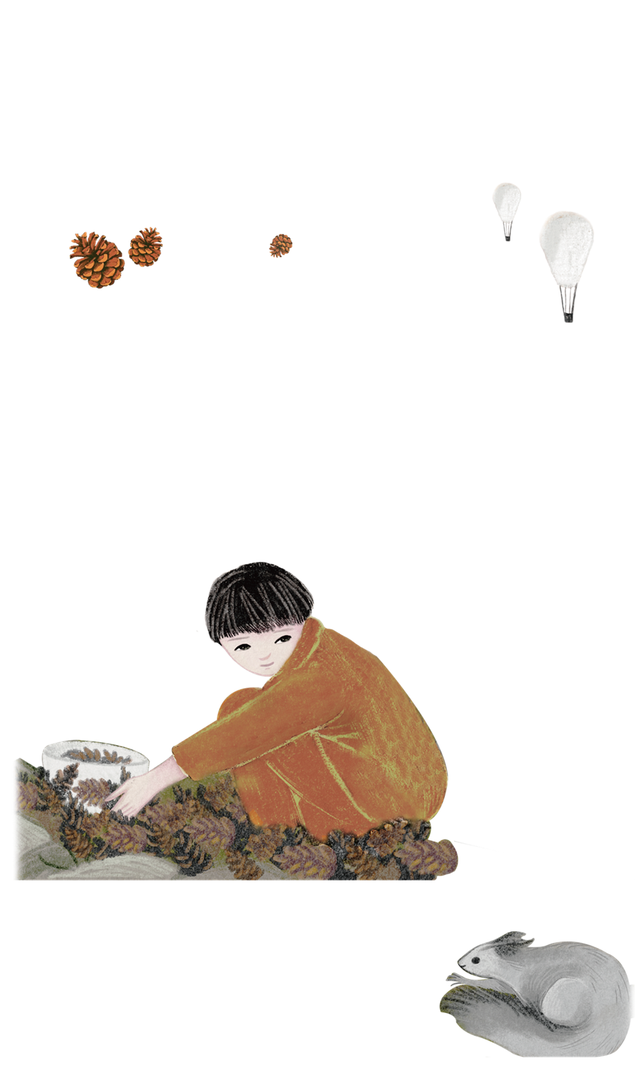 爸爸是個打塔人,從高高的紅松樹上把紅松塔打下來。紅松塔里的松子經(jīng)過加工,運(yùn)往國內(nèi)國外的城市,再擺上超市的貨架。