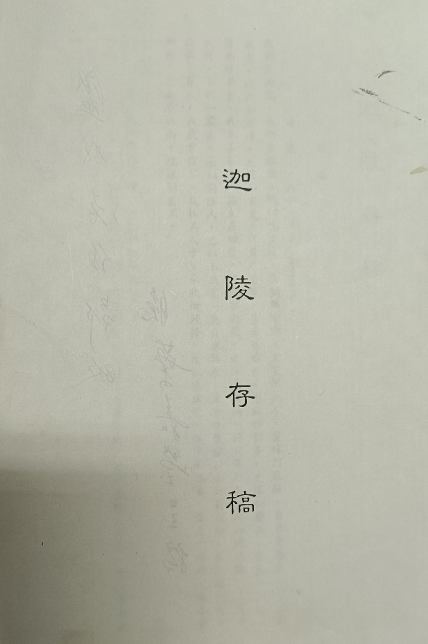 先生的大名我是早已聽說,但可惜沒有見過面。至今想起,仍為憾事。我趕忙打開檔案,翻閱這份存有先生手跡的珍貴資料。這是一份打印稿,第一頁豎排印著書稿名稱“迦陵存稿”。其背面寫有兩行字“盛成老伯郢政 晚葉嘉瑩呈稿”?!佰眱勺治液苌僖姷?,大致能猜到它的意思。為準確把握這個詞,我特意查詢了一下,有關它的介紹大致如下:郢政意為郢正,斧正。明朝黃中在其 《重刻朱子年譜記》一文中,有這樣的表述:"且身處孤陋,書籍不全,暫作裨諶之補,祈請諸君更為郢政。" 清朝魏際瑞在《與子弟論文》中是這樣的:"人以文字就質(zhì)于人,稱曰'正之'。忽念政者,正也。改稱曰'政'。又念正者必須刪削,乃曰'削政'。又念斧斤所以削也,轉(zhuǎn)曰'斧政'。又念善斧斤者莫如郢人,易曰'郢政'。"也許是這個詞有些偏僻,后來人使用的不是很多。這份打印稿豎排打印,右側(cè)裝訂,共27頁。書稿收錄了43篇詩詞,創(chuàng)作時間跨度長達42年,創(chuàng)作時間最早的是1941年先生17歲時寫的五言詩《詠懷》,“高樹戰(zhàn)西風,秋雨檐前滴。蟋蟀明空庭,夜闌猶唧唧。……夜夜夢江南,魂迷關塞黑。”創(chuàng)作最晚的是1983年創(chuàng)作的《蝶戀花》和《木蘭花慢·詠荷》。創(chuàng)作地點更是跨越半個地球,由北京到南京,由臺南到哈佛,由溫哥華到巴黎,由科隆到羅馬,由泰山到曲阜。先生在行萬里路時,手中的筆從未停歇,她一直在書寫自己心中的千言字。這些詩篇有寫景的,有詠物的,有感懷的,有送別的,先生用它們記錄著自己的人生足跡與世事滄桑。