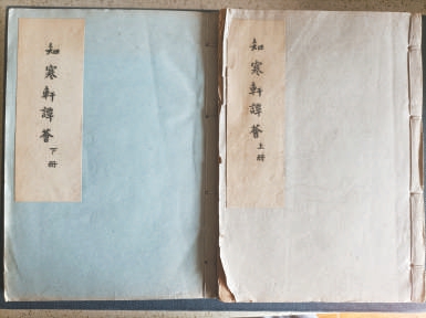 淡藍(lán)綠色的封面,左上部淺黃簽條書(shū)“知寒軒譚薈”五個(gè)字(分“上冊(cè)”與“下冊(cè)”),光照年久,已顯灰黃。正文共四卷210個(gè)筒子頁(yè),書(shū)有5厘米厚,鎖線(xiàn)裝訂,全書(shū)約20萬(wàn)字。一般來(lái)說(shuō),用鐵筆刻蠟紙成版然后油墨印刷,通??捎“侔耸住簿褪钦f(shuō),這部書(shū)經(jīng)歷這許多年的風(fēng)淘雨洗,能找到一部已很不容易了!