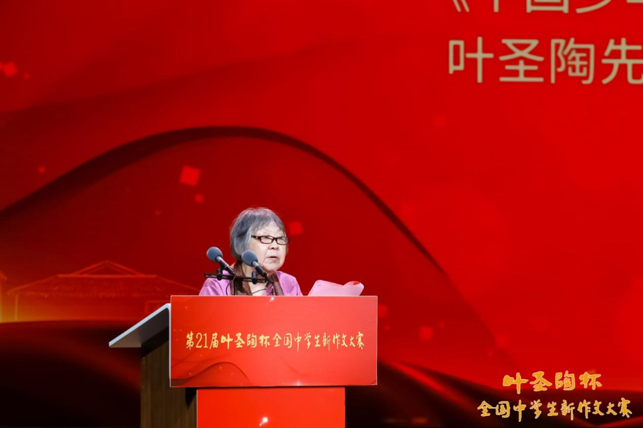 大賽顧問、葉圣陶孫女葉小沫在典禮上深情致辭,表達對大賽的祝賀和感念。她說,今年10月28日是葉圣陶先生誕辰130周年,許多尊敬和熱愛他的人,都準備在這個日子里紀念他。以他名字冠名的作文大賽,就是對他的最好紀念。每一位參賽的同學,都應(yīng)該記住他老人家說的話:“文是要做的,更重要的是做人。”他說“習作的目的不在學習寫文章,預(yù)備做文人”,而是因為“無論什么人都生活在人群中,隨時有把意思感情發(fā)表出來的需要。發(fā)表可以用口,可以用筆,比較起來用筆的效果更大。因此,人人都要學習用筆發(fā)表,人人都要習作”,鼓勵同學們學習葉圣陶先生做人和作文的準則,永遠把他作為榜樣。