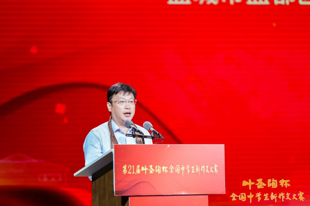 7月28日,第21屆葉圣陶杯全國中學生新作文大賽頒獎典禮在江蘇省鹽城市草房子景區(qū)舉行。白燁、吳思敬、曹文軒、顧之川、陳福民、賀紹俊、邵燕君、葉小沫、葉永和、王世龍、李飛、馬兵、孫道功、蔣成峰、尤立增、桑哲等文學界、教育界、新聞出版界的專家,中共鹽城市鹽都區(qū)委員會、鹽都區(qū)人民政府、鹽都區(qū)教育局、鹽都區(qū)文化廣電和旅游局、江蘇大縱湖文旅集團等支持單位相關(guān)領(lǐng)導(dǎo),以及獲獎師生代表近四百人參加了頒獎活動。