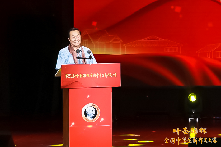 大賽組委會主任、中國當代文學研究會名譽會長、中國社科院研究員白燁在祝賀獲獎師生的同時,總結(jié)了本屆大賽工作,特別對所有支持大賽的單位表達了誠摯的謝意。他說,葉圣陶杯大賽不僅是一個中學生賽事,而且是配合黨和國家政策導(dǎo)向,為國育材、培根鑄魂、立德樹人的重要途徑。當前二十屆三中全會已經(jīng)明確擘畫了未來二十年中華民族偉大復(fù)興的藍圖,大賽的選手都將成為這個偉大時代的見證者、建設(shè)者,應(yīng)該更加主動地擁抱時代,提升自己的文化綜合素養(yǎng)。