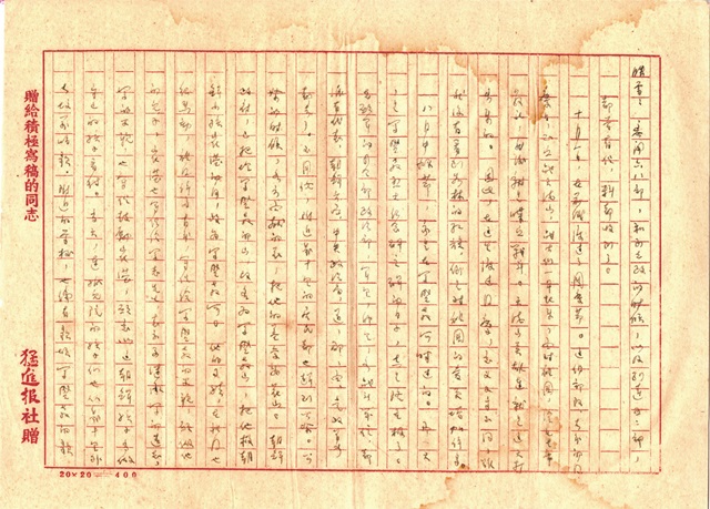 最后一封寫于10月6日的信可被視為這段激流生活的片尾預告。由于當晚收到47軍軍報《猛進報》的約稿,所以便用猛進報社所贈的印有“贈給積極寫稿的同志”的5頁紙來寫信。李蕤向妻子報告了一件喜事,那就是他在朝鮮與七年未見的妻弟白玉重逢,二人促膝長談過去和新生活,最為慨嘆的便是當年被國民黨抓兵之后的悲慘,與逃脫之后在共產(chǎn)黨這里獲得的解放形成了鮮明對比。同時,他還囑咐妻子可無需再往朝鮮給自己寫信,因為回到祖國的日子近了。