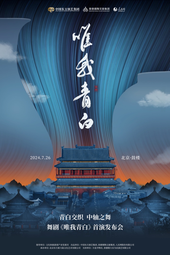 穿越千年,唯我青白。青白交織,中軸之舞。7月26日晚,由文化和旅游部產業(yè)發(fā)展司指導,中國東方演藝集團、景德鎮(zhèn)陶文旅集團、人民網股份有限公司共同出品的舞劇《唯我青白》首演發(fā)布會在北京鼓樓舉辦,以舞樂讓百歲鼓樓煥發(fā)新生,為北京中軸線申遺成功更添華彩。