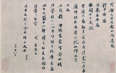 蘇軾書法的尚意,并不意味著放棄法度,而是對“法”的活用與改造,向“法”中注入新意,旨在表現(xiàn)自我的意趣、情感和個性,所以是“法中尚意”。此次展覽特意從故宮博物院借來蘇軾的《治平帖》,此帖字里行間洋溢著一股超脫世俗的寧靜與雅致,盡顯心境之平和與筆墨間靈動飄逸之美。蘇軾曾言:“我書意造本無法,點畫信手煩推求?!贝酥械摹盁o法”,實則是強調在書法創(chuàng)作中,意境的營造與情感的抒發(fā)高于一切成法,而“煩推求”則是以一種輕松自如、不拘一格的態(tài)度,展現(xiàn)其書法藝術的自然流暢與隨心所欲。