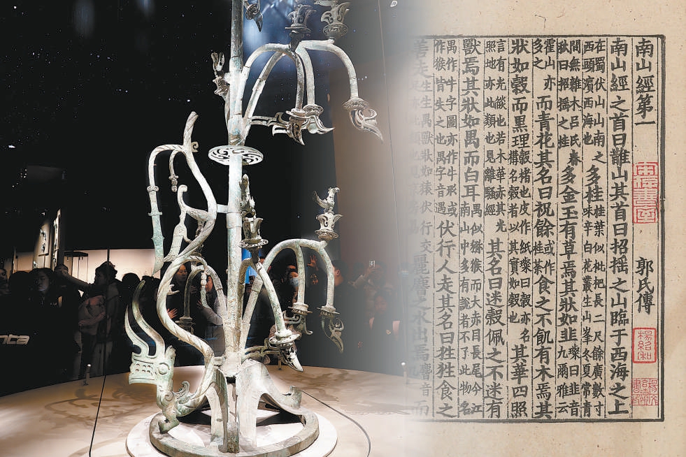 三星堆一號青銅神樹 新華社發(fā) 《山海經(jīng)》書影