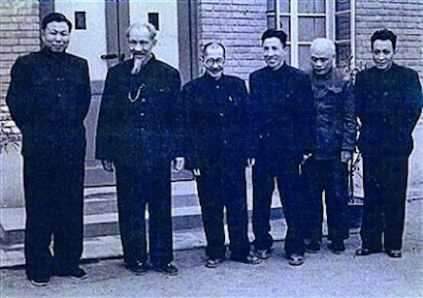 1957年5月,夏鼐(右三)與考古研究所老專家蘇秉琦(左一)、陳夢家(右一)等合影