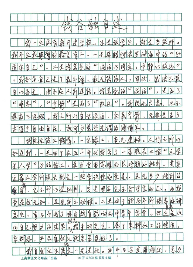 錢(qián)谷融自述手稿 圖片由普陀區(qū)圖書(shū)館提供,收錄于華東師范大學(xué)名師庫(kù)數(shù)字平臺(tái)