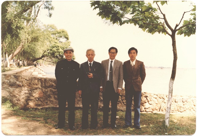一九八〇年代錢(qián)谷融(左一)與王瑤(左二)等合影 圖片由作者提供