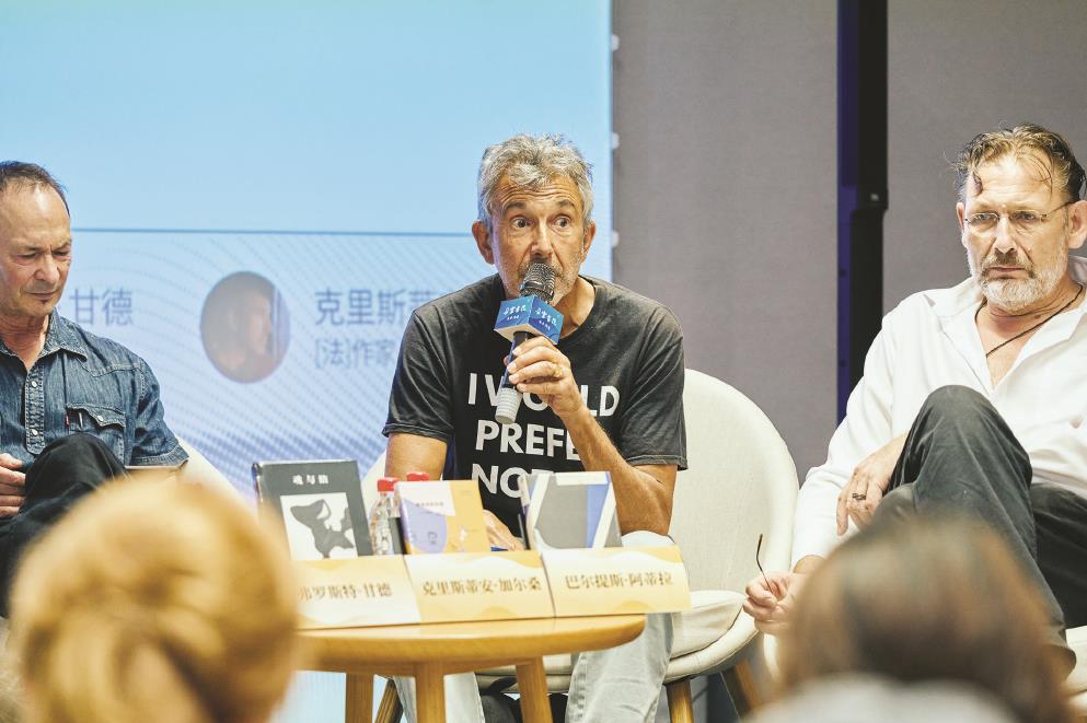美國詩人弗羅斯特·甘德、匈牙利小說家巴爾提斯·阿蒂拉和法國作家克里斯蒂安·加爾桑在2024上海國際文學(xué)周中,以“跨越故事邊界,連接人與世界”為主題展開一場作家圓桌談,他們基于各自的創(chuàng)作經(jīng)驗(yàn),面對上海讀者,共同探討了語言變遷、科技發(fā)展和經(jīng)濟(jì)因素對文學(xué)的影響。(均主辦方供圖)