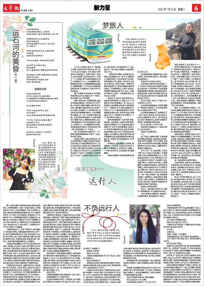 時代更迭,而傳承始終。接續(xù)這樣的傳統(tǒng),在中國作協(xié)創(chuàng)研部和中國作協(xié)青年工作委員會的大力支持下,我們期望“新力量”能呈現(xiàn)出獨(dú)屬于青年人的品質(zhì)、風(fēng)格,反映青年作家、文藝工作者深入人民生活,扎根廣闊大地,與時代同呼吸共命運(yùn)的精神氣象。創(chuàng)刊5年來,專刊重點(diǎn)推介了近百位作家、藝術(shù)家。從彼時小有名氣的馬伯庸、石一楓、班宇、笛安、張怡微、石倚潔、林蔚然,到一出現(xiàn)就受到關(guān)注的楊知寒、林棹、栗鹿、焦典,再到高校里熱愛文學(xué)、癡迷寫作的學(xué)子,不唯名氣,不存偏見?!白8!薄白右埂薄胺被ā薄暗蕊L(fēng)來”……主題詞寫作給予初出茅廬的青年和經(jīng)典作家同臺的機(jī)會。朋友圈、IP改編、AI寫作、國潮動漫、短視頻微探、日常生活與非虛構(gòu)、電子榨菜……凡此種種,不一而足,聚焦各個時期的青年文化熱點(diǎn)?!懊總€人都是不同的,表達(dá)最真誠的看法就好”,每當(dāng)作者問起有什么特別的要求,我常會這樣回答——給他們開辟深林,他們便真的能走出新的路徑,青年最可貴的,就是這樣的生力。