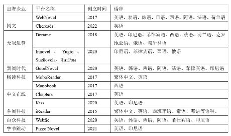 部分主要網(wǎng)絡(luò)文學(xué)出海企業(yè)及其出海平臺(tái)