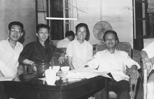 1979年10月,《星星》詩刊復(fù)刊后之辦公室。中間放一茶桌,為接待客人及詩友之用。從左至右為白航、流沙河、曾參明、陳犀。