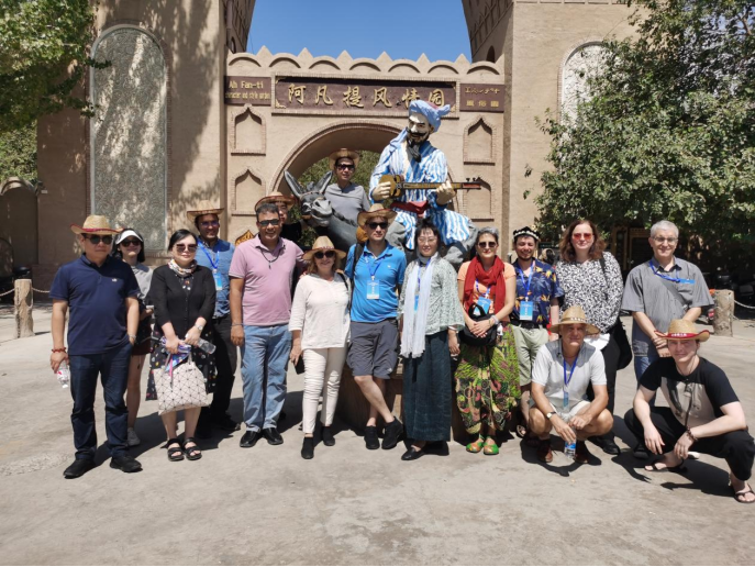 從古代絲綢之路到如今的“一帶一路”,新疆作為人類(lèi)文明匯聚之地,擁有絕佳的自然景觀與悠久的人文歷史,難怪英國(guó)歷史學(xué)家湯因比說(shuō),如果一個(gè)人有來(lái)生,我愿意出生在兩千年前的龜茲(今新疆庫(kù)車(chē)),那個(gè)多民族文化交匯的地方。在天高云淡、瓜果成熟的8月,空氣中氤氳著豐收的香甜氣息,各國(guó)漢學(xué)家、翻譯家和中國(guó)作家從新疆首府烏魯木齊出發(fā),途經(jīng)昌吉回族自治州、吐魯番市,到水草豐茂的伊犁哈薩克自治州,最后抵達(dá)中國(guó)最西部的喀什地區(qū)。大家仿佛將短短的8天時(shí)間過(guò)成了一個(gè)月的豐富程度,他們品味新疆人文歷史,飽覽新疆美景,品嘗新疆美食,感受新疆人民的熱情好客以及安居樂(lè)業(yè)、載歌載舞的幸福生活,各國(guó)翻譯家和中國(guó)作家彼此間暢通無(wú)阻的交流,達(dá)成一個(gè)個(gè)合作意向,成就一段段真摯友誼,也留下一幕幕美好瞬間。