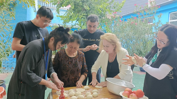 伊犁老城喀贊其民俗旅游區(qū)體驗(yàn)制作馕。(攝影:宋衛(wèi)國(guó))