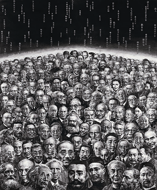 工作之余,馮遠始終堅持以藝術家的責任感與使命感,對中國人物畫語言和范式創(chuàng)新進行探索與實踐。《灼日》里配有大量馮遠不同階段代表作,這些作品或崇仰前賢,或俯憫蒼生,向現(xiàn)實的廣度和歷史的縱深、向精神的高度和人性的深處拓展。翻閱這些圖片,能感受到作品兼具感性與學理雙重表達,坦蕩深沉、大氣磅礴。他筆下的人物造型謹嚴傳神,筆墨蒼澀遒勁通透老辣,線條簡潔渾厚舒暢有力,呈現(xiàn)出深邃的思想內(nèi)涵、深遠的歷史視野和悲憫的人文關懷。透過這些畫作,更能看到隨著人生閱歷的積淀與豐厚,他的人物畫筆墨和意趣都漸入一種“從心所欲不逾矩”的佳境,給觀者感人至深的視覺震撼與回味。殊為珍貴的是,書中還有大量他對創(chuàng)作、對藝術的體悟與感受,尤其對自己作品立意的闡釋,對了解馮遠及藝術研究無疑具有極大價值。