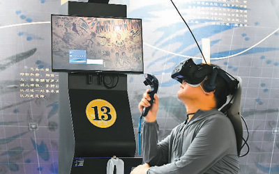 游客借助VR設(shè)備沉浸式游覽莫高窟第285窟虛擬場景。